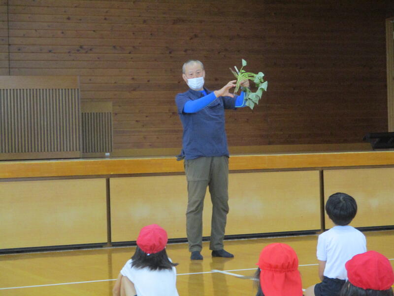 児童の質問に、縦植えと横植えについて分かりやすく教えていただきました。