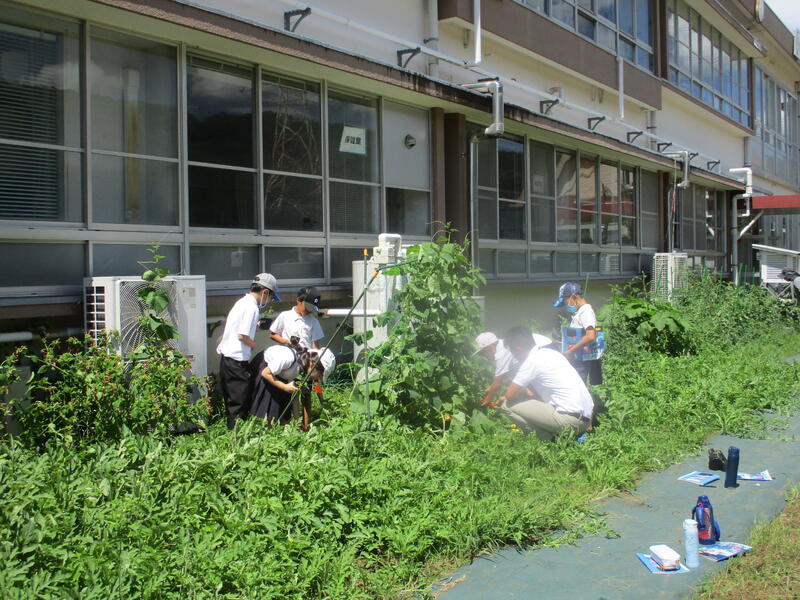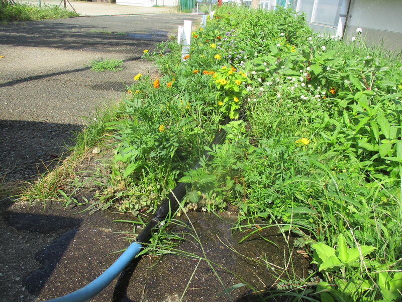 今朝(9/7)、1年生が花壇の所でバッタを捕まえていました。