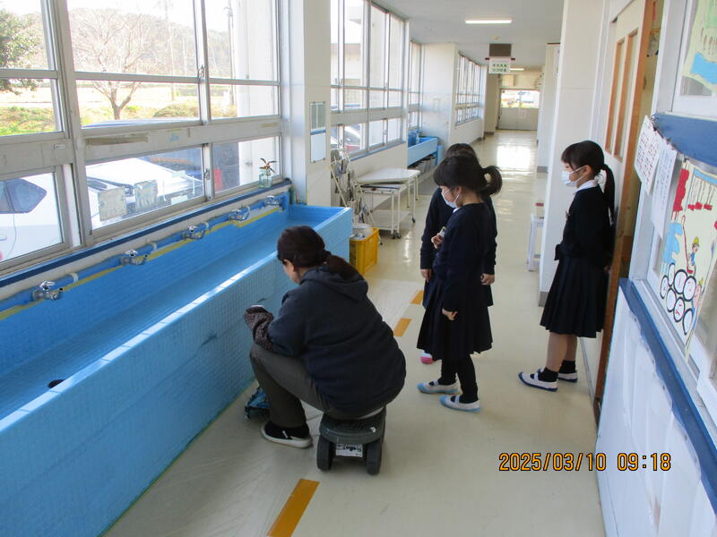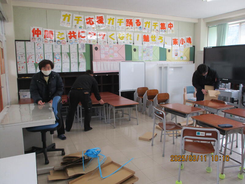 1・2年生教室前の流しの色塗り、中庭の剪定、次年度の机やパーテーションの入荷等です。年度末、年度初めの準備が着々と進んでいます。