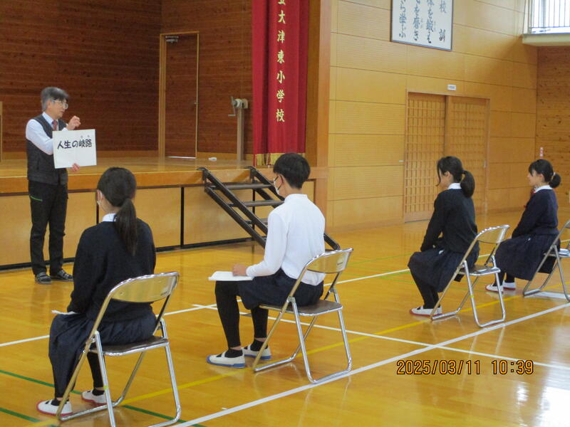 6年生の練習では、当日の動き方を一つ一つ確認しました。子どもたちにとってとても大切な人生の節目でもあり、人生の岐路となります。この式典を通じて、更に一つ成長の機会となることを期待しています。