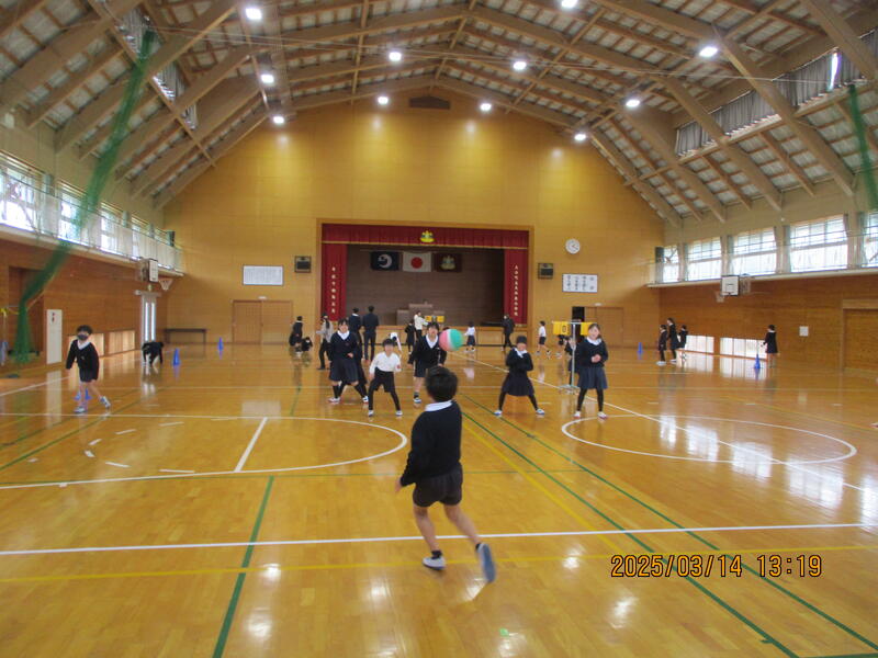 本日(3/14)の昼休みは、全校遊びでした。みんなでドッジボールを楽しみました。とても盛り上がりました。
