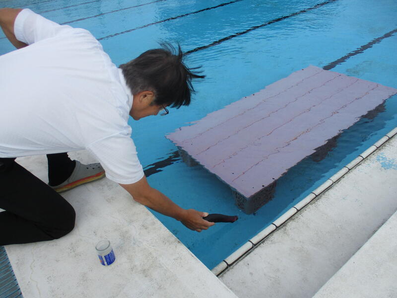子どもたちは、先週プールサイドの掃除をしました。プールサイド同様、綺麗なプールに仕上げます!シルバーさんには、たいへん感謝しています。