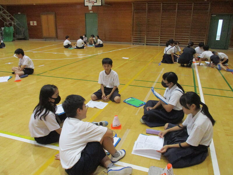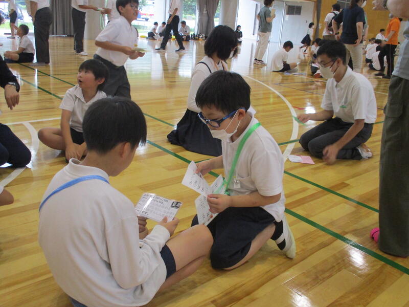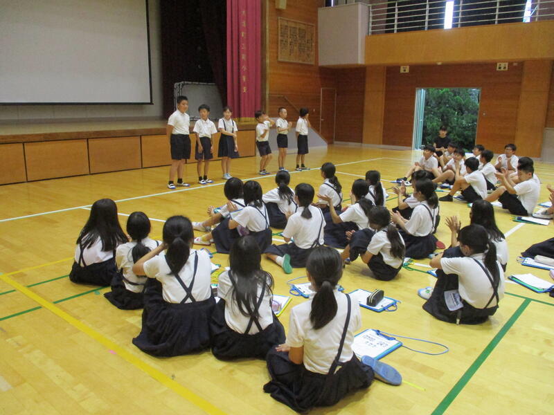 最後に、縦割り班で感想交流をしました。1年生から6年生まで、自分の考えを持ってみんなが発表していて、この交流会も意義のあるものでした。