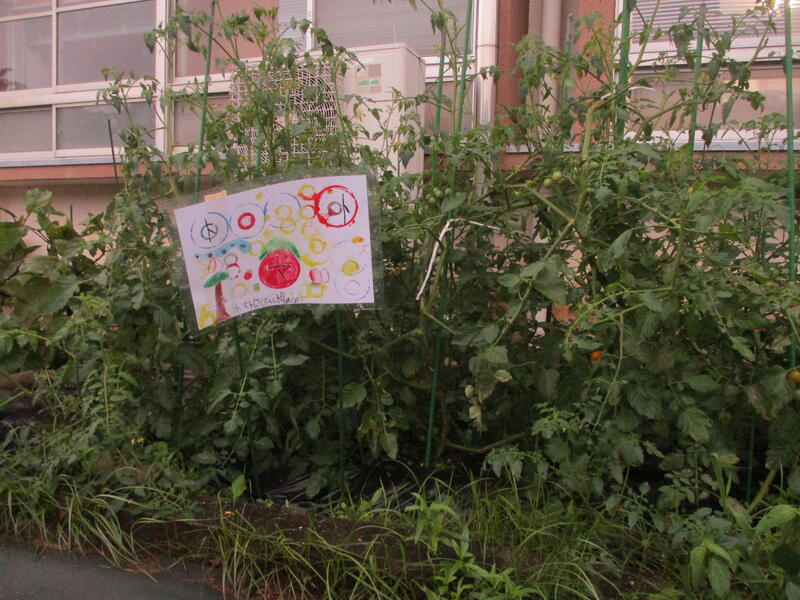 今朝(7/1)、野菜畑の様子を観察しました。ここは、1・2年生が毎日観察とお世話をしています。