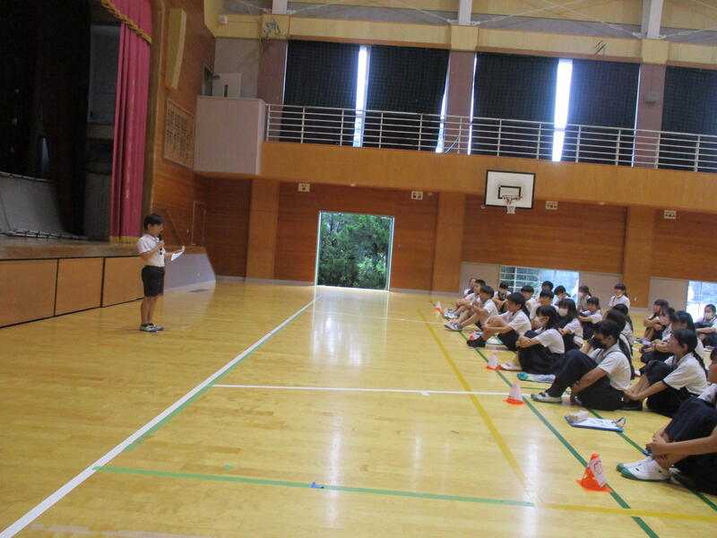 まず、いのち委員会から、人権月間スローガン、今月のめあて、そして全校遊びについて説明がありました。