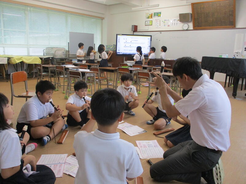 本日(7/2)、3・4年生が音楽の授業をしていました。それぞれの曲を、リコーダーで奏でる練習です。みんな友達と一緒に楽しそうに学習をしていました。