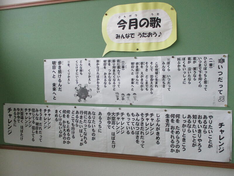 こんな歌詞で始まりますが、とても元気が出る曲です。毎朝歌うことで、清々しく爽快な気分になり1時間目を迎えています。