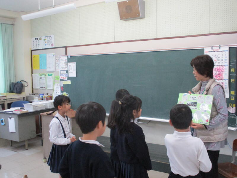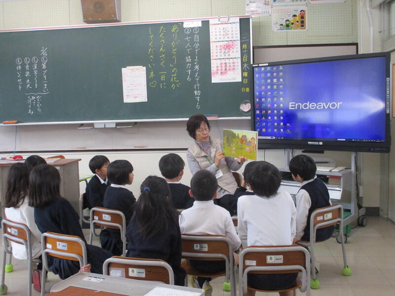 本日(3/1)、本年度最後の読み聞かせをしました。ゆうすげの会の4名の皆さんから、本を読んでいただきました。