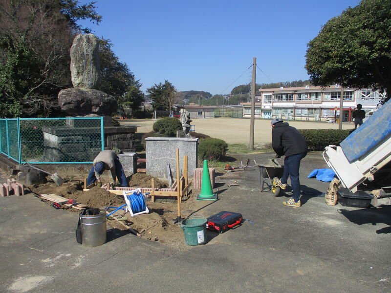 これからの行事(卒業式、入学式)の際、正門では桜が咲きほこり、花壇には綺麗な花が咲き、式に花を添えてくれることでしょう。完成が楽しみです。