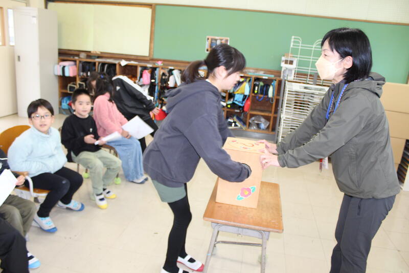 3・4年は西田さんへ 5・6年は西村さんへ