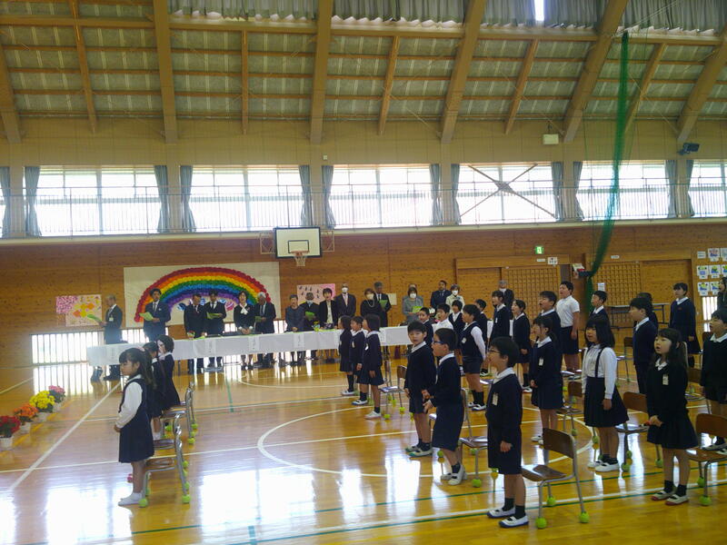 4名の先生方のお話に、涙する子どもたちもたくさんいました。これまでのことが走馬灯のように思い出されたことと思います。東小らしい温かな式となりました。