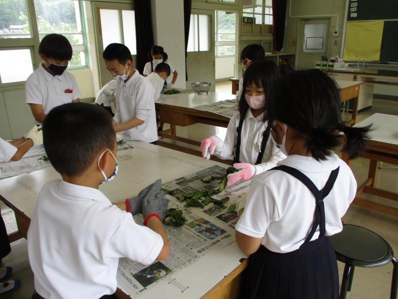 5月11日(火)に2、3年生がお茶摘み体験をしました晴れ