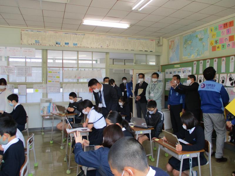 大津町では、児童生徒パソコン一台が導入され、これからその活用が本格化します。その現場の様子の見学でした。