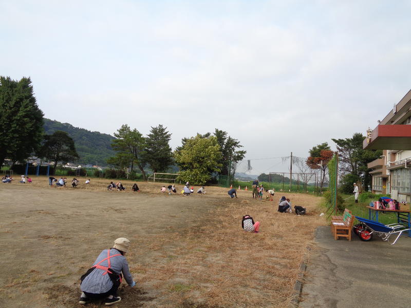 8月23日(日)7:00からPTA愛校作業でした。夏休みの最終日、翌日から学校が始まることもあり、子どもたち、保護者の皆様、学校応援団の皆様と職員で草取りや草刈り作業を行いました。