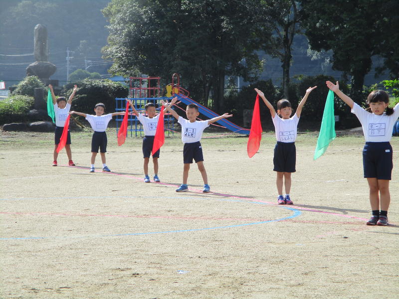 入場行進、開会の言葉、優勝旗返還、誓いの言葉、国旗掲揚、準備運動などの練習を行いました。みんな元気いっぱいに取り組めました。今年の運動会のスローガンは、「一生懸命優勝目指し、負けても勝っても、みんなで楽しんで、心に残る運動会」です。