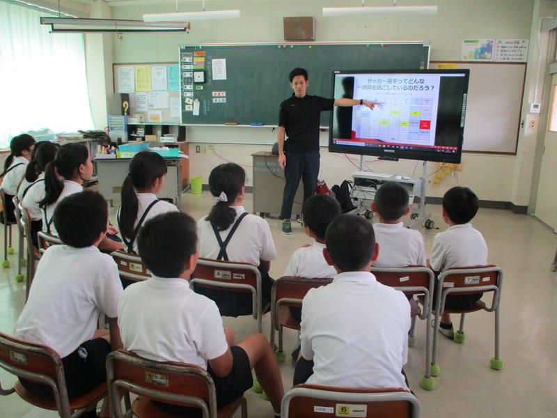 10月3日(木)3,4校時に職業講話を行いました。全体会で、講師紹介、その後、低・中・高学年それぞれで、各教室に分かれて、講師の先生にお話しをしていただきました。農園経営、学芸員、アスリートクラブの3つの分野で活躍される3名の方々をお招きしました。日々の仕事内容や、大切にしていること、どうしてその仕事に就いたか、国際化を迎え英語は大切であることなど、子どもたちが将来を考える上で、そして、日々の勉強を頑張っていくことの大切さを感じることのできる有意義なひとときとなりました。子どもたちは、3つの教室を回り、お話しを聞き、質問をすることができました。講師の先生方、大変ありがとうございました。