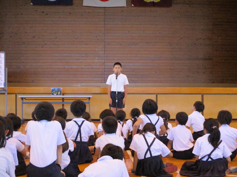 6月24日(月)2校時に、校内童話発表会を行いました。各学年の代表が、全校児童の前で堂々と発表。自分が決めた童話をすべて暗記しての発表でした。緊張もあったと思いますが、全員よく頑張りました。代表になれなかった人もよく頑張っていました。すばらしい子どもたちです。これまでの努力に拍手を送ります。