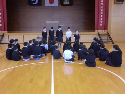 26日(土)に大津町児童生徒集会が開かれました。今年は大津東小学校も発表を行いました。大人数の前でしたが、大きな声でハキハキと発表することができました。しっかりと自分の思いを伝え、他校の発表へのお返しを発表することができました。