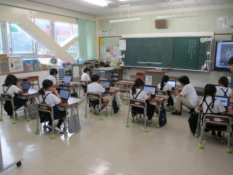 1・2年生はミライシードを使って問題を解き、3・4年生はタイピング練習を、5・6年生は運動会の所信表明を打ち込んでいました。それぞれの学年の活用方法から、子どもたちの成長が見られます。効果的な活用のために、大切なことを身に付けさせていきます。