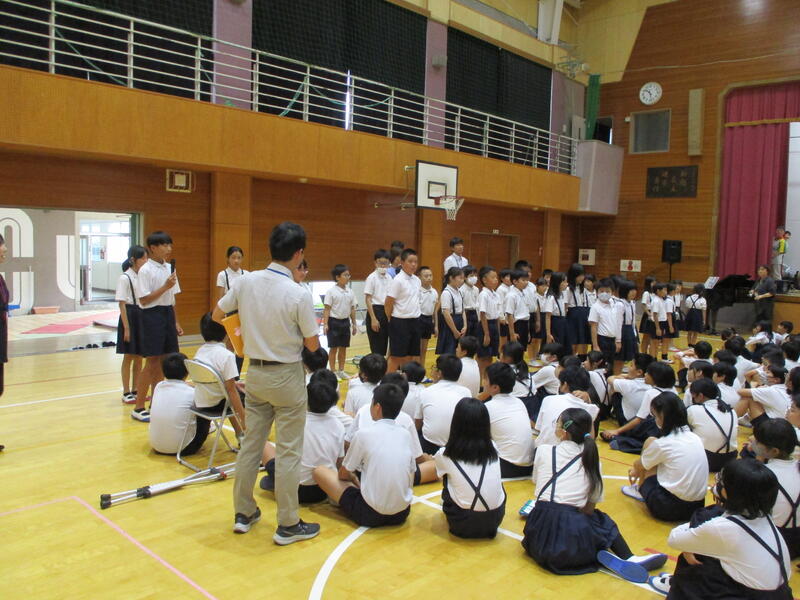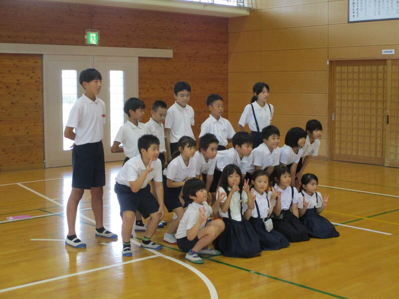 本日(9/30)、運動会練習をしました。今日の練習は、全校で行う表現運動“ソーラン節”です。3年生以上が動画に合わせて踊ります。1・2年生はそんな様子を見て学んでいました。