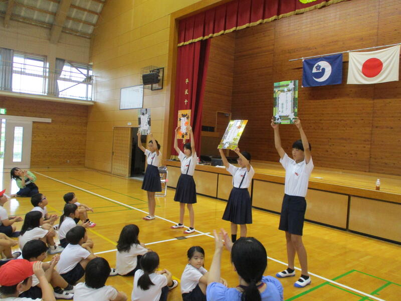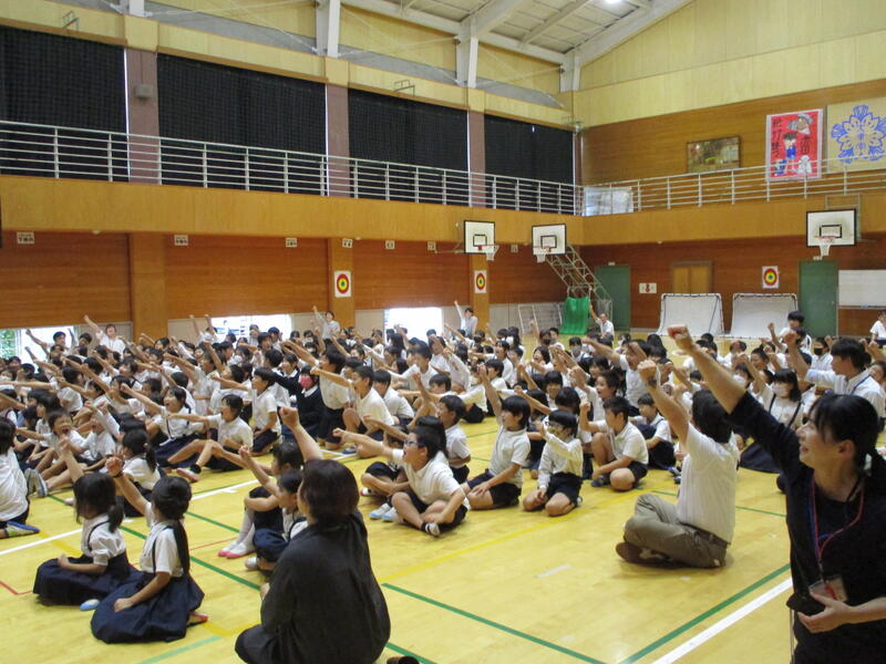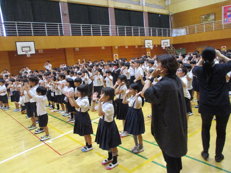 本日(10/7)、県の事業“いきいき芸術体験”で、劇団きらら(池田さんはじめ4名の方)をお招きしました。2年生以上の児童は、昨年に引き続き指導いただきました。