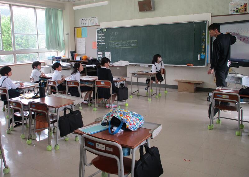 本日(4/22)、各学年の複式授業を参観しました。担任と学習支援の先生と連携して、一人一人に丁寧な指導がなされていました。