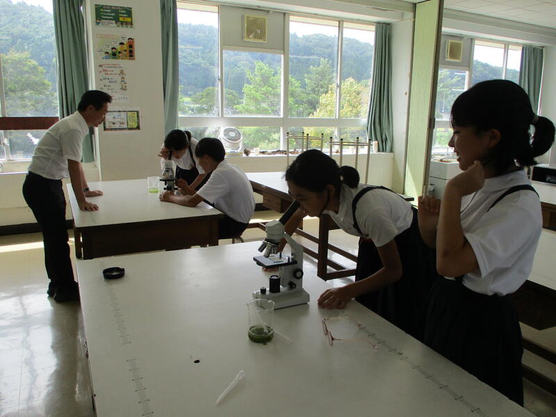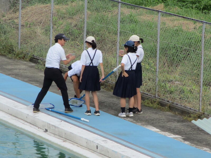 プールの水を汲み、理科室で顕微鏡を使って調べます。
