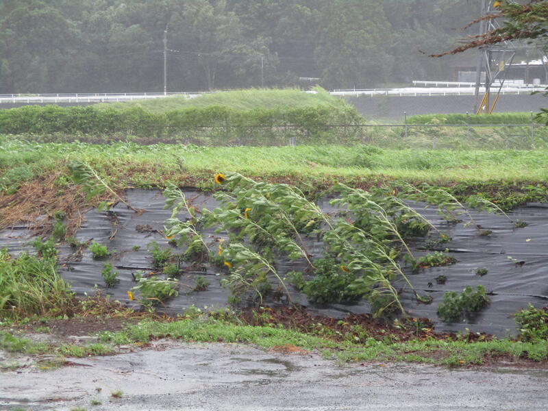 なお、学校のひまわりの様子をお伝えします。強風の中、ひまわりも精一杯踏ん張っています。早く台風が去り、楽しい日常が戻ってきてほしいと思っています。