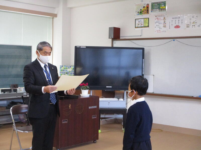 2月7日(月)の朝、大津町夢作文で夢大賞と入選の表彰式をリモートで行いました。3年生の岩下侑香里さんが夢大賞に、2年生の今村昊大さんが入選に輝きました。おめでとうございます。