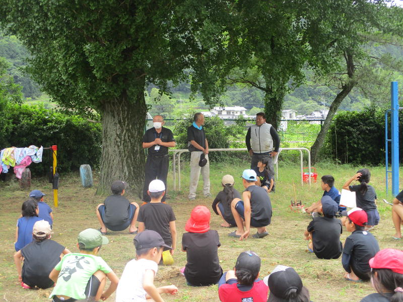 まず校長先生からお話があり、間隔を空けて行うこと、熱中症にならないようにマスクを外しても良いが、距離を保つこと、そして田植えはとても貴重な経験であること、を話していただきました。