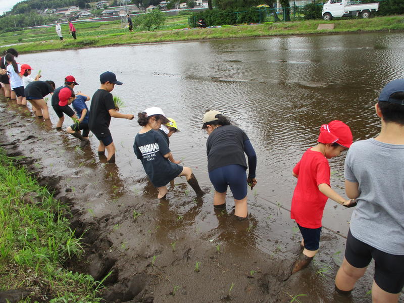 また地域の学校応援団であります、吉岡さん、地域コーディネーターの内村さん、PTA会長の宇都宮さんをお迎えして、田植えの方法をしっかり学びました。