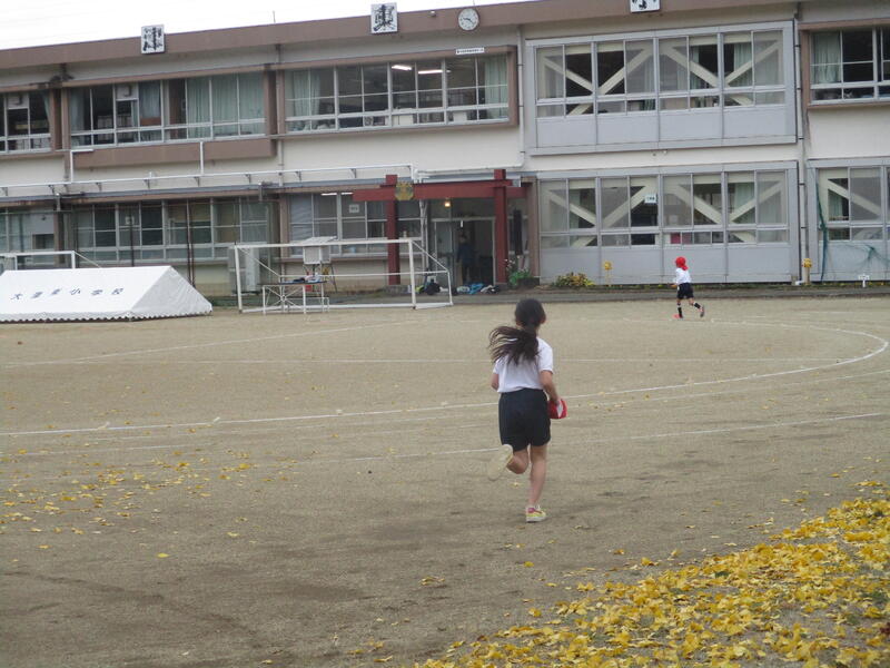 また、1・2年生は、体育の後に銀杏のじゅうたんに乗ったり、投げたりして楽しみました。