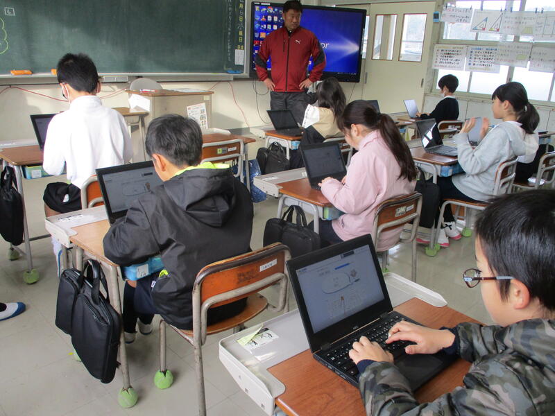 本日(11/21)、3・4年生がJ-Windの方々にプログラミングを学びました。これまでは、毎年、西原村の風力発電施設の中でSDGsの視点に立ったことを学び、その後雄大な前庭で凧揚げをするという流れでした。毎年、子どもたちは楽しみにしていて、とても大好評でした。
