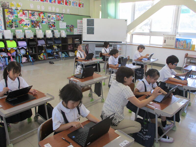 本日(6/13)、1・2年生はタブレットを使って学習をしていました。これまで学んだ内容を、問題を解きながら確認していました。