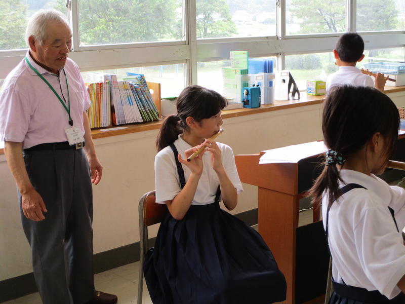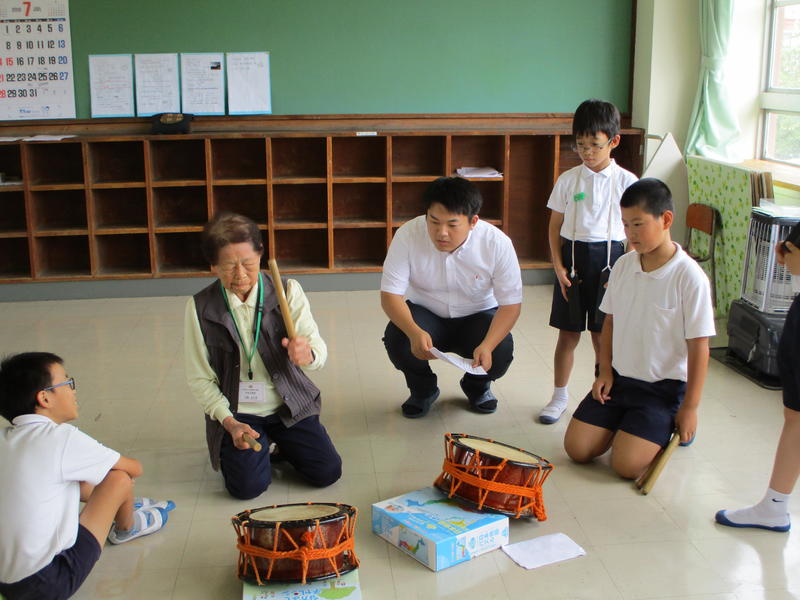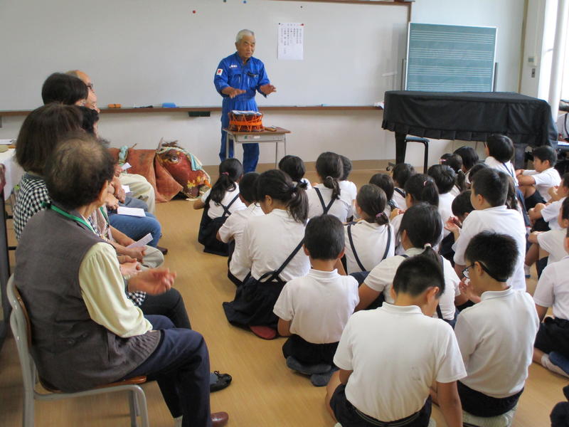 7月2日(火)5校時に、地域の牛舞い保存会の皆様7名に来てきただき、「牛舞い」という無形文化財の大切さと、それを受け継ぐことのすばらしさを話していただきました。全校児童に話していただきた後、4~6年生は早速練習に入りました。子どもたちも生き生きと練習に励んでいました。
