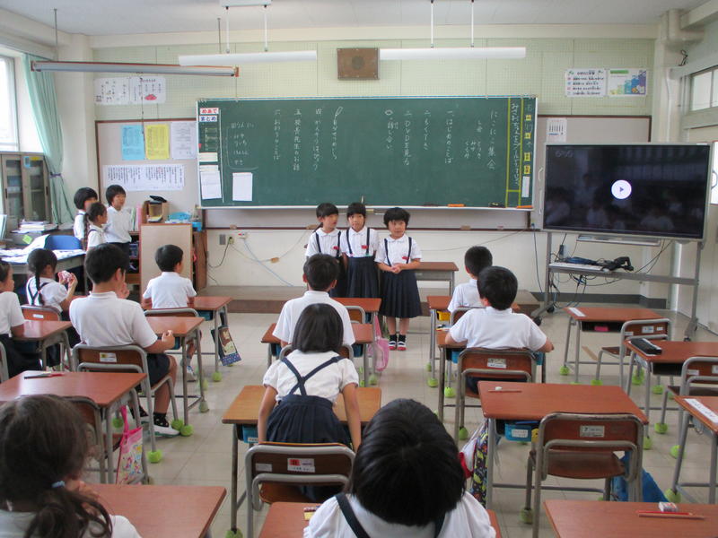 8月26日(月)に、前期後半がスタートしました。朝の時間に、全校集会を行いました。全員、元気に登校できていました。校長からは、「一人一人が安心して勉強できる学校」にしていくために協力することの大切さが話されました。また、生活や保健で大切なことについて、劇で子どもたちに分かりやすく職員が伝えていきました。最後に、校歌を全員合唱しました。