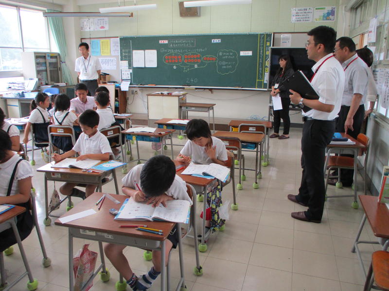 6月24日3校時に、複式学級である2・3年生の研究授業を行いました。本校の研究テーマ「主体的に学び、考えを表現する児童の育成」を目指し、効果的にグループ学習を取り入れ、学習リーダーを育て、発表力をつけさせていく授業でした。ICTを用い2つの学年全体でできること、別々に効果的に行うことも工夫されていました。