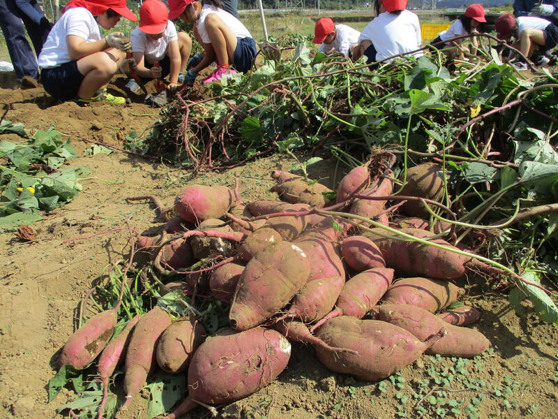 協力して、芋を傷つけないように丁寧に掘り進めました。