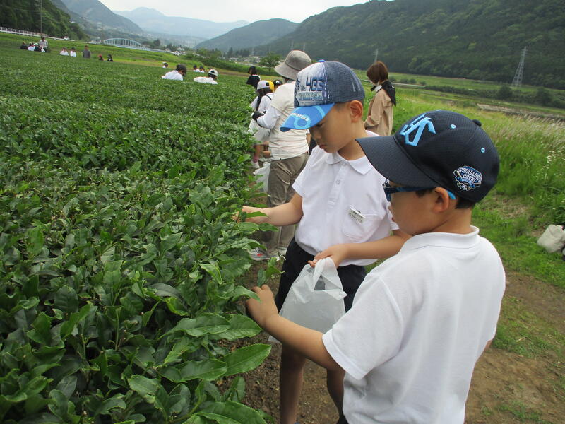 昨日(5/15)、小1~小4の児童を中心に、瀬川製茶さんのご協力を得て、“茶摘み”を体験しました。茶摘みは、本校の子どもたちにしかできない貴重な体験です。食卓で見るお茶の葉が、どのように生長し、食卓に届くのか、その概要を知る機会となりました。