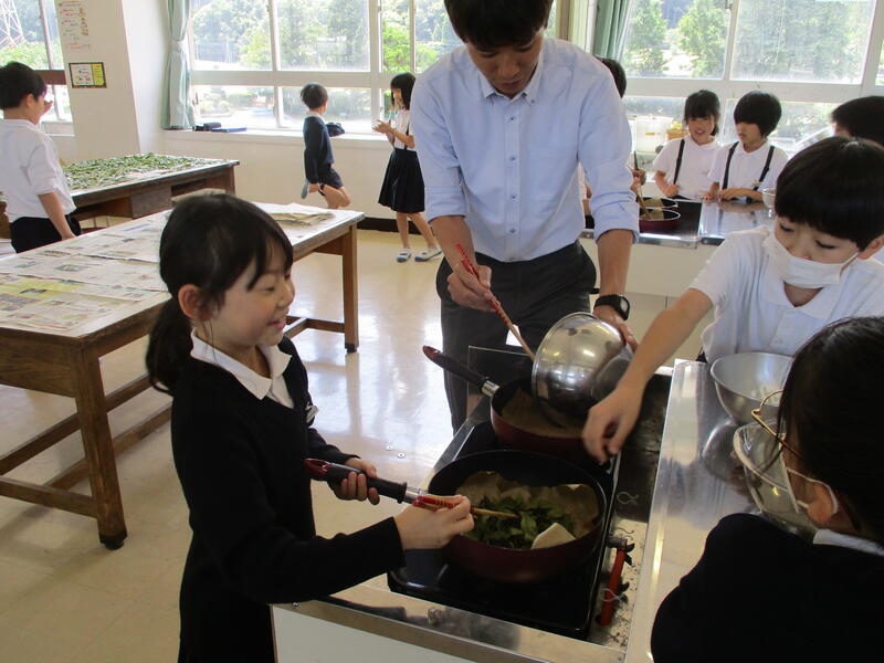 本日(5/16)、3・4年生を中心に、昨日収穫したお茶の葉を使って、湯煎と乾燥した後、煎って揉む(製茶までの)作業をしていました。本校でしか学べない貴重な経験をしています。