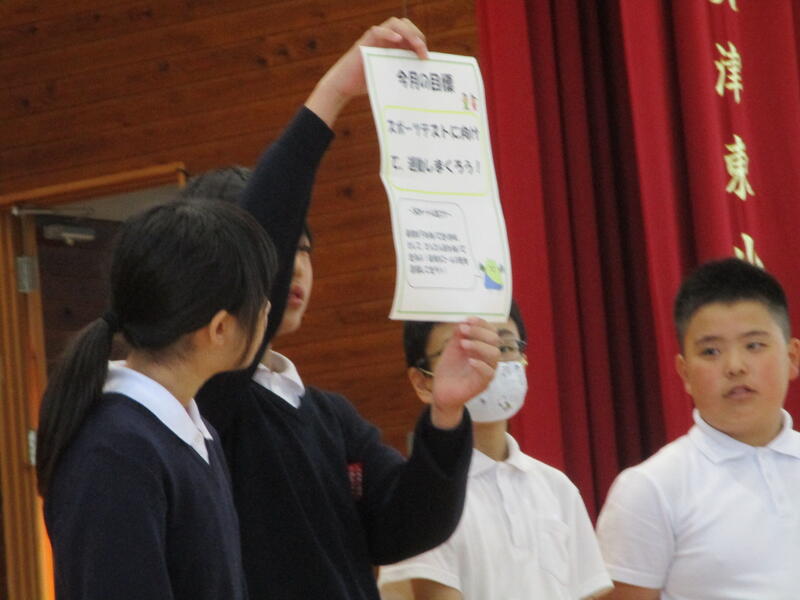 その後、委員会の発表です。本年度も委員会活動は3年生以上の児童で編制し、2つの委員会を運営します。