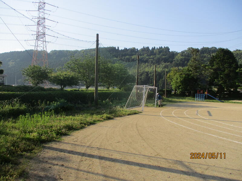 先立って、早朝7時から草刈り機が稼働しました。草に覆われた校地のあちらこちらで、勢いよく草が刈られました。