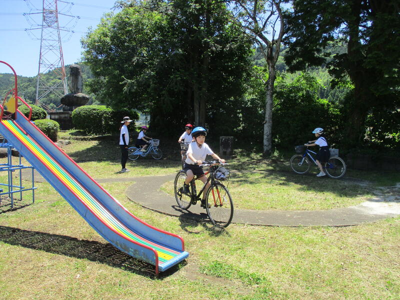 最後に、交通指導員の方から、自転車に慣れてルールを守って安全に乗れるようにしてほしいというお話がありました。子どもたちは、とても楽しく学んでいました。指導いただいた方々に感謝申し上げます。