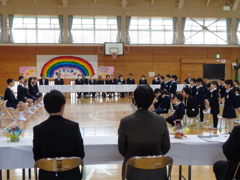 4名の先生方のお話に、涙する子どもたちもたくさんいました。これまでのことが走馬灯のように思い出されたことと思います。東小らしい温かな式となりました。