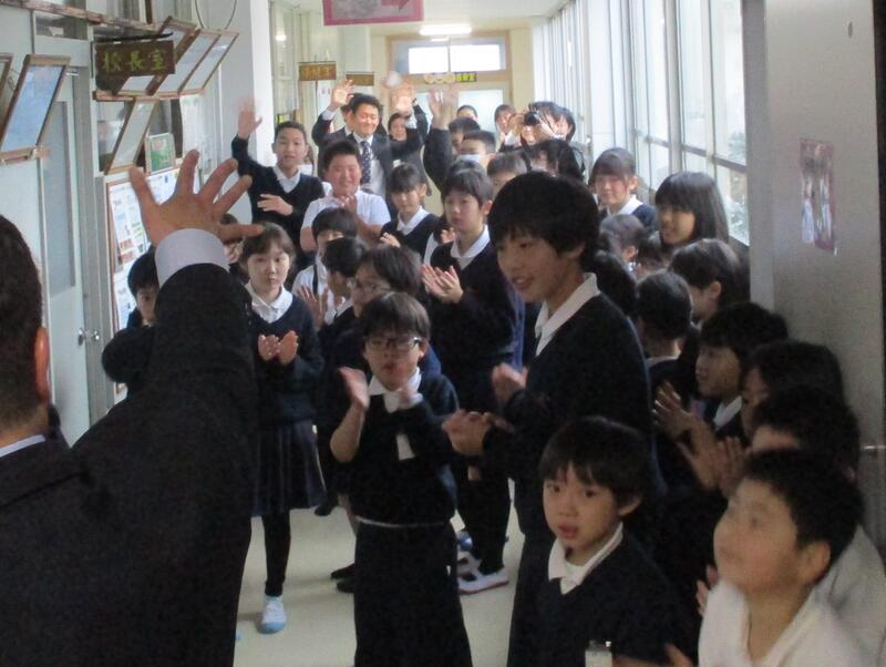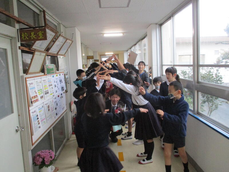 最後に、新天地でのご活躍を祈念して、理科室から職員室までアーチを作りお見送りをしたところです。