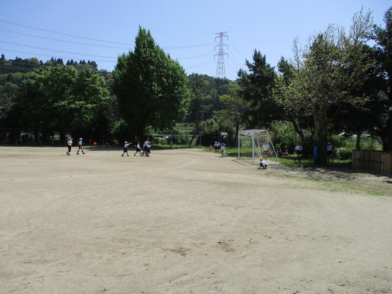 本日(4/17)の昼休み、運動場では37名の児童が遊んでいました。これは、本校41名から考えると9割を超します。