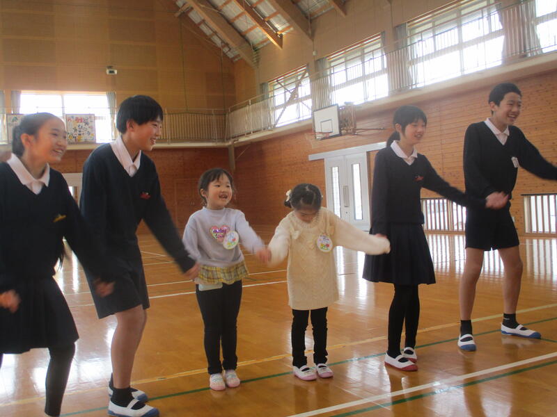 次年度入学予定の4名の子どもたちを迎え、1年生も5・6年生も楽しみにしていました。体育館で遊んだり、歓迎会をしたり、その後は5年生が手を繋ぎ学校探検をしました。