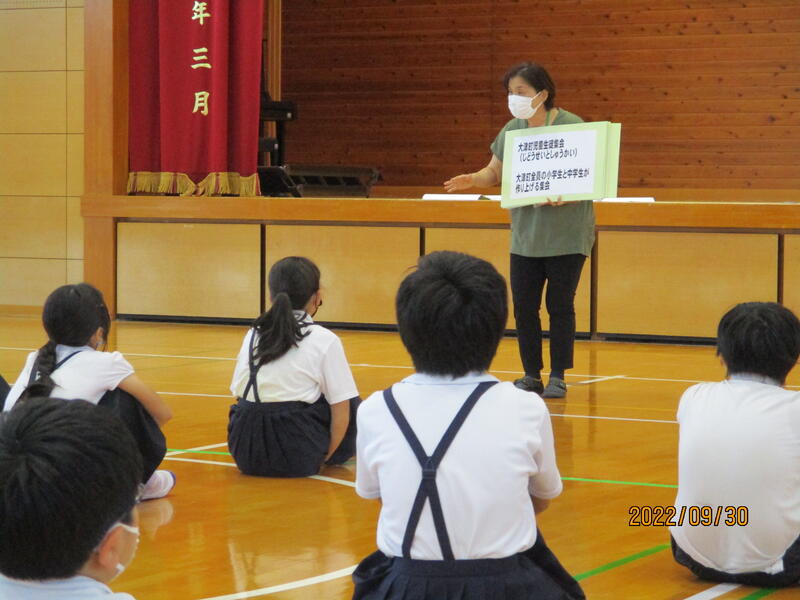 この2年間は、コロナ禍で実施できなかったこともあり、本日(9/30)、小3以上の全児童に、人権教育主任や校長から説明しました。子どもたちはうなずきながら、真剣に考えていました。