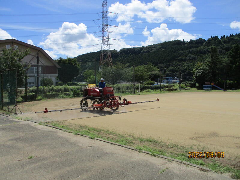 本日(8/9)、吹田の大田黒さんに、除草剤を散布していただきました。運動場周り草は、1週間もすると枯れてくると思われます。