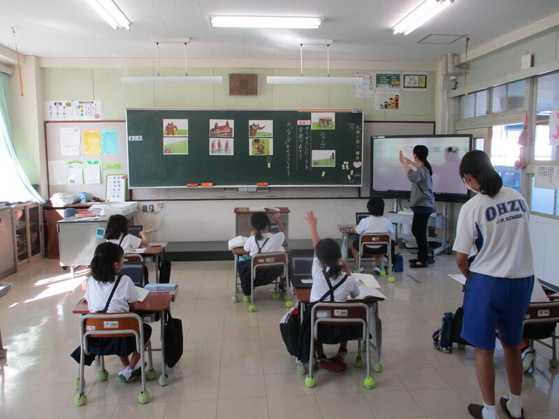 先日(9/28)、3年生は国語「サーカスのライオン」を、4年生は国語「一つの花」を学習していました。担任と学習支援員の先生方が連携して指導する複式授業です。